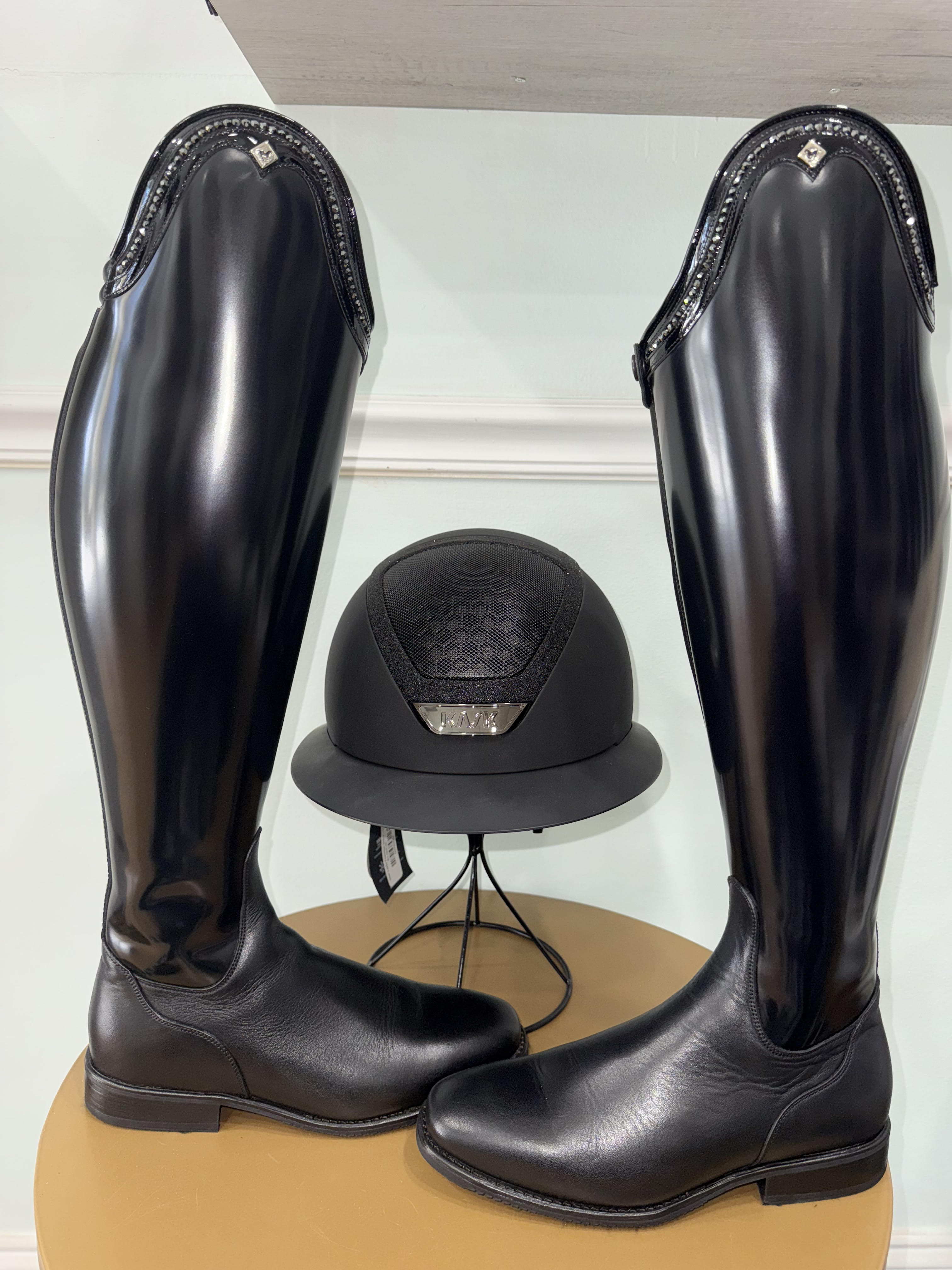 All DeNiro Boots are made with grain calfskin leather inside and out. Every boot undergoes the unique Water Resistant Advanced Treatment (WRAT) for the leather sole as well as the outside leather. The treated leather still retains it's breath ability, allowing sweat to escape, while preventing outside water from seeping in. Activated Carbon Insoles have a natural antibacterial action, while the mid-sole is made of natural leather and has a high sweat absorbent power keeping your feet clean and dry. Vibram anti-slip outer soles keep your feet secure in the stirrups, even in the worst weather. Zipper is made and guaranteed by YKK.