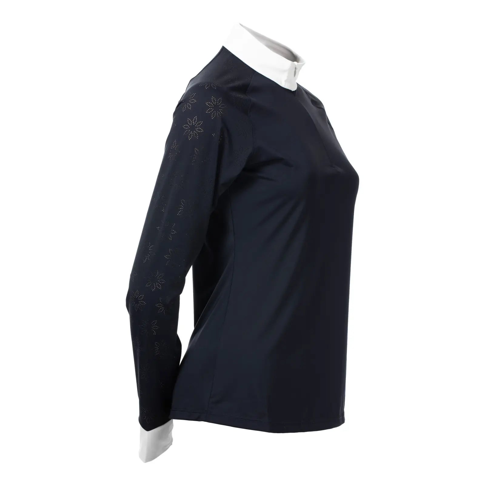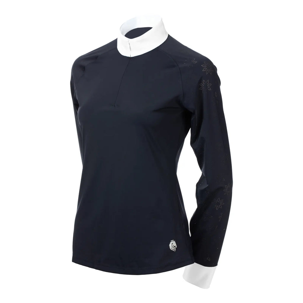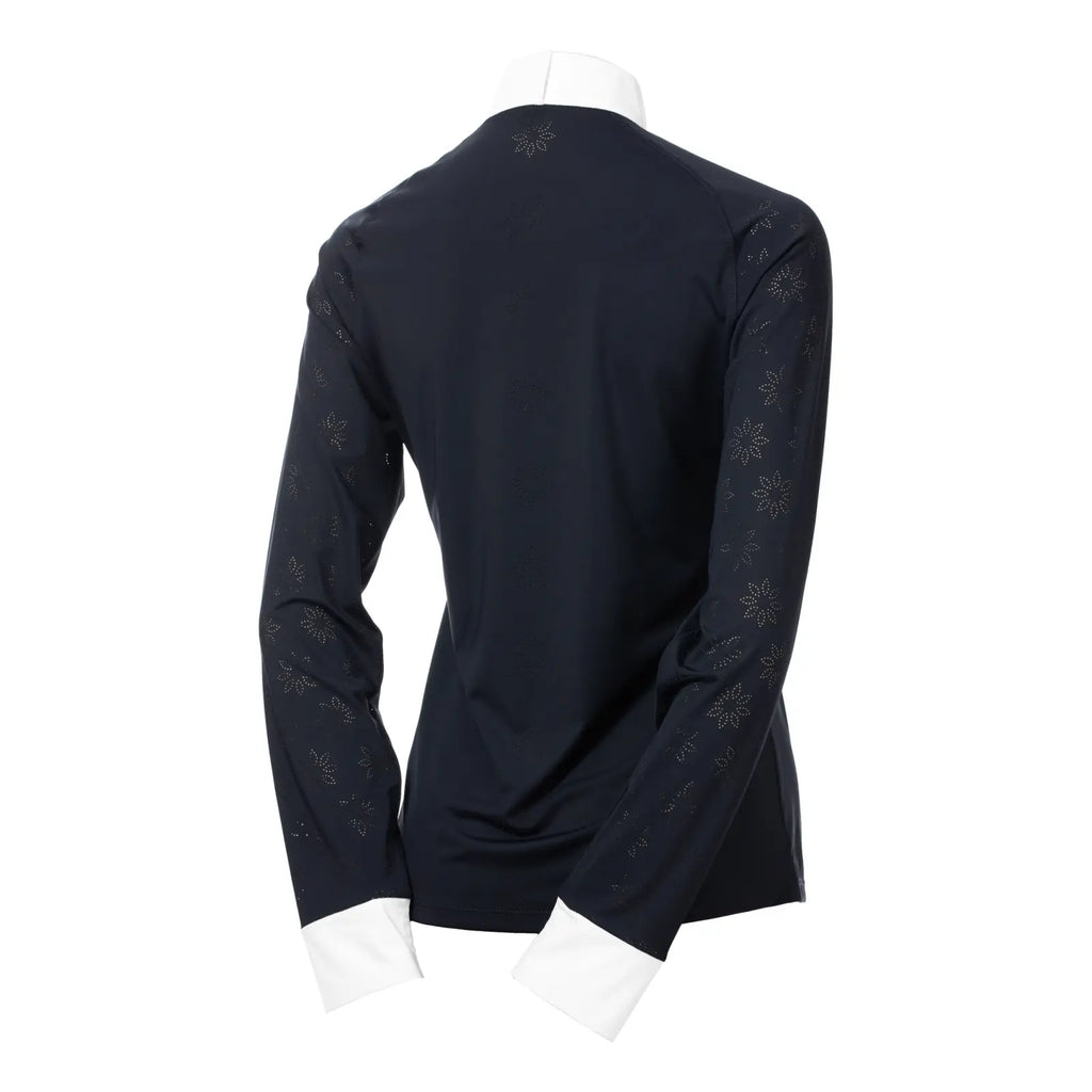 The Equinavia Petra Women’s Long Sleeved Show Shirt is where sophisticated elegance meets high-performance technology. Crafted from silky-smooth technical fabric, this shirt features stunning flower-shaped, laser-cut perforations that promote optimal airflow to keep you cool. The moisture-wicking, quick-dry material includes UPF 30+ protection, while the hidden quarter zip, crisp white collar, and white pull-on cuffs ensure a professional silhouette. The sophisticated design and modern cut allow this top to transition seamlessly into your everyday wardrobe, delivering on both impeccable style and performance function.