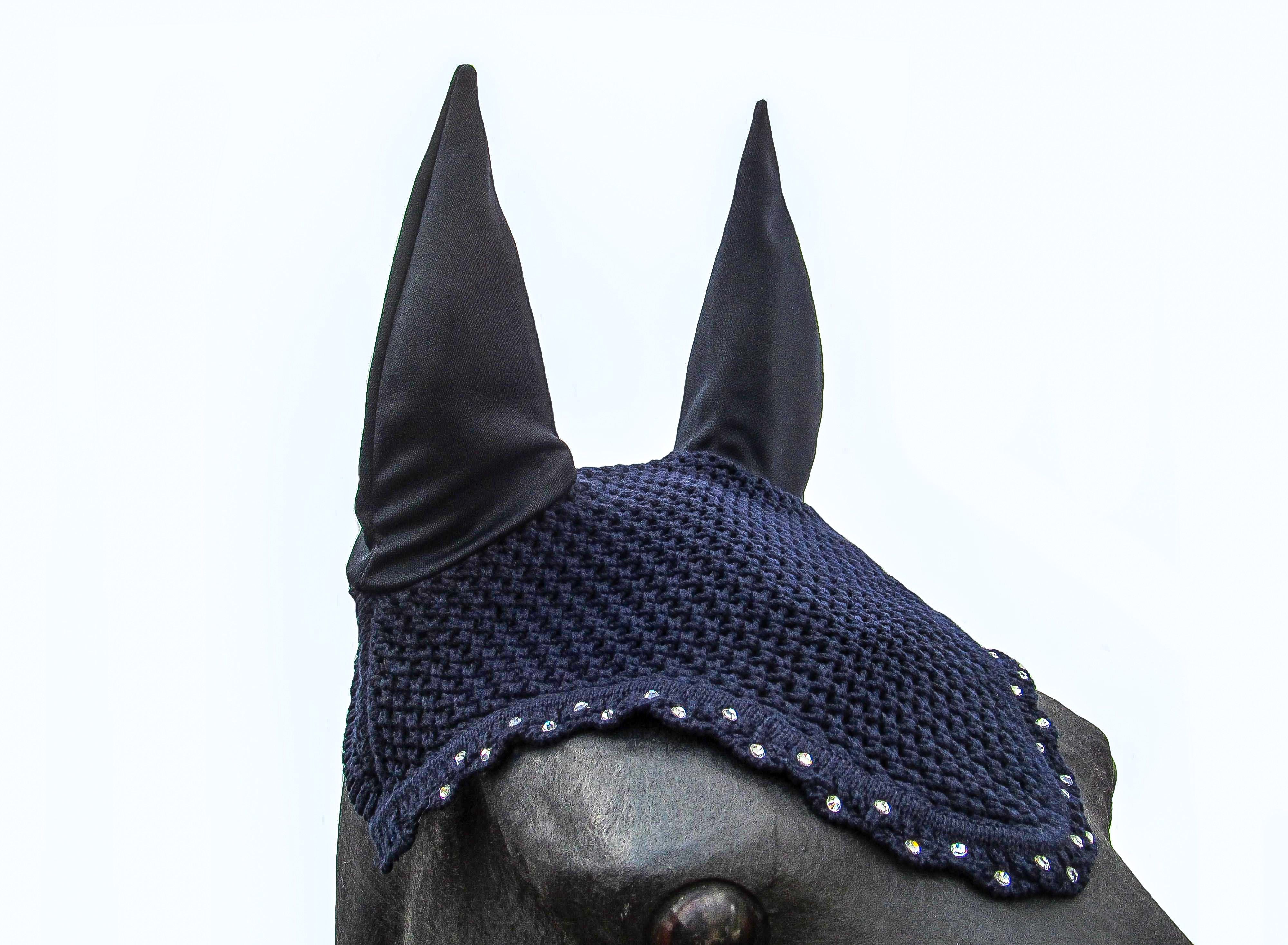 Lightweight woven ear bonnet with Swarovski Crystals on the edge.